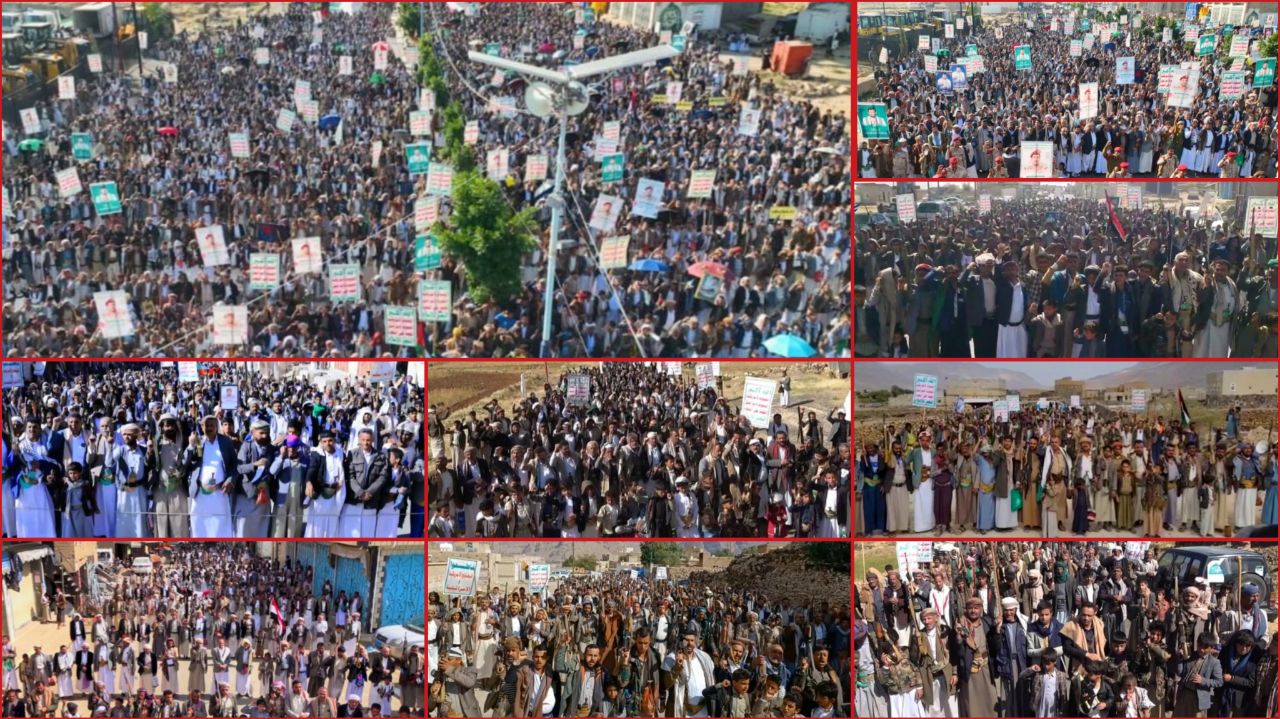 عمران | المسيرة نت: امتدت اليوم في محافظة عمران موجة شعبية واسعة، في 131 مسيرة وحشد شعبي اجتذب المواطنين من مختلف المديريات، تحت شعار "عامان من العطاء.. ووفاء لدماء الشهداء".