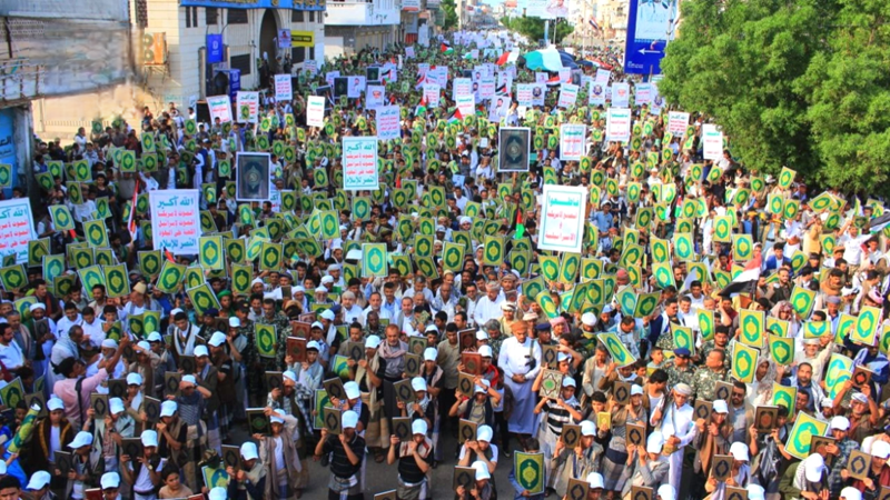 مسيرات مليونية غاضبة في 317 ساحة بالحديدة نصرة للقرآن وفلسطين