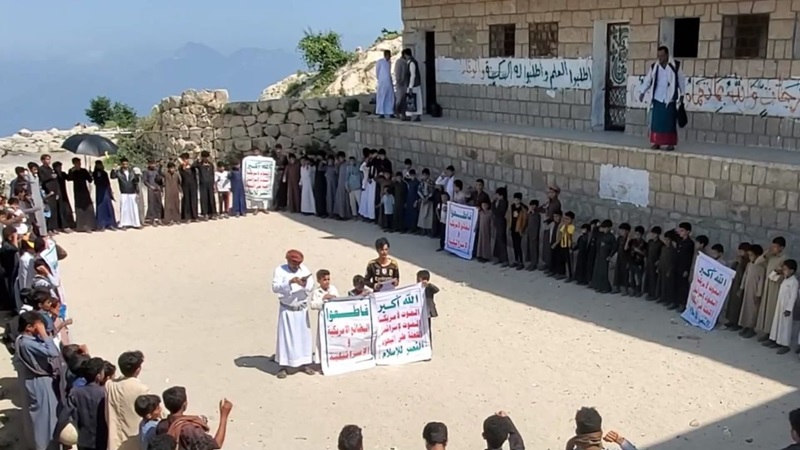 صعدة| المسيرة نت: نظم أبناء عزلة الوقيش في مديرية شداء والهيئة النسائية بمديريات محافظة صعدة، اليوم الجمعة، وقفات تضامنية مع أبناء الشعب الفلسطيني، وإسناداً لمقاومته الباسلة، تزامنا مع الذكرى الثانية لانطلاق معركة "طوفان الأقصى".