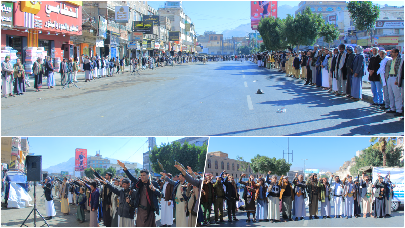 المسيرة نت | حسين الكدس: أقام أبناء مديرية صنعاء القديمة اليوم الثلاثاء، وقفة مسلحة تحت عنوان "وفاء لشهيد القرآن.. التعبئة مستمرة ومستعدون للجولة القادمة."