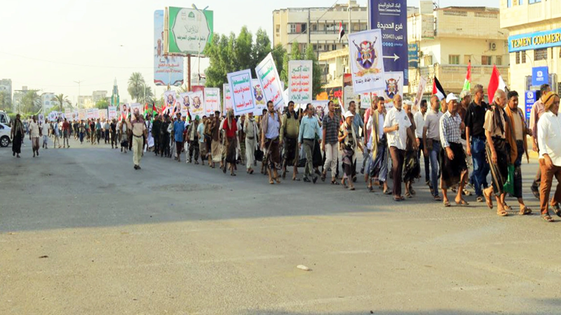 وقفة ومسير شعبي لخريجي قوات التعبئة بمدينة الحديدة