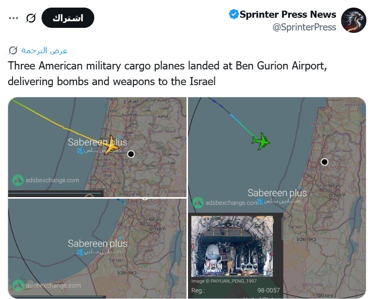 جسرٌ جوي أمريكي بريطاني إلى الكيان الصهيوني محمّل بالقنابل وسط تصعيد إقليمي