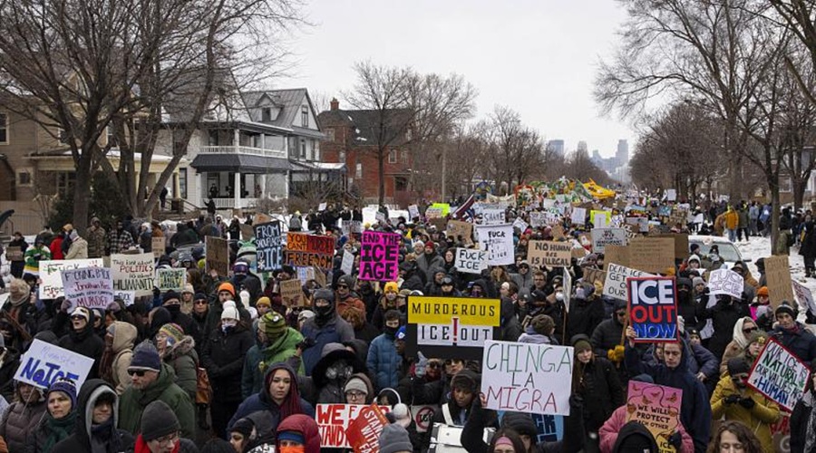 المسيرة نت| وكالات: لليوم الخامس تواليًّا؛ تتواصل الاحتجاجات الغاضبة التي تشهد توسعًا إلى ولايات أخرى، مندّدةً بالإعدام الميداني الذي طال سيدة برصاص ضابط هجرة وطالبوا بمحاسبته، ورفع المتظاهرون شعارات ترفض استمرار حملة اعتقالات تشنها الحكومة الفدرالية.-