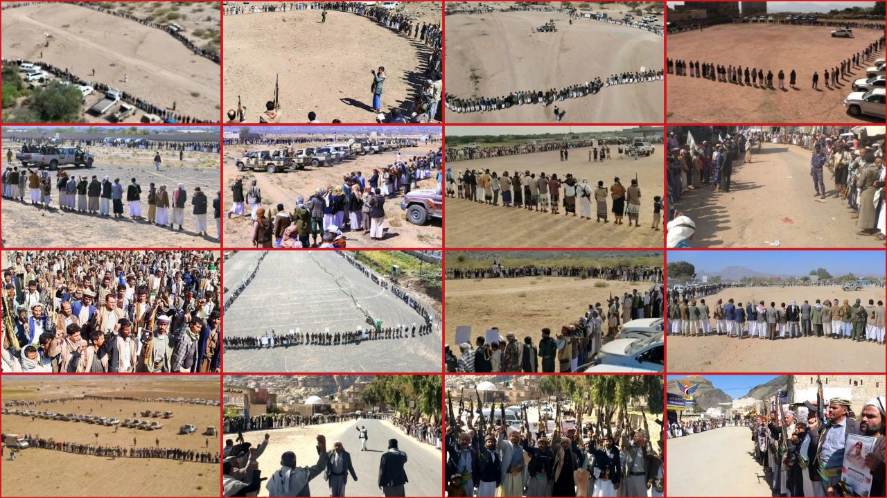وفي كل جمعة يخرج اليمانيون في مسيرات مليونية بعشرات الساحات في مختلف المحافظات تلبية لدعوة السيد القائد عبدالملك بدرالدين الحوثي، وللتأكيد على موقفهم الثابت في نصرة الشعب الفلسطيني المظلوم، وتأييدا لعمليات القوات المسلحة ضد ثلاثي الشر (أمريكا وبريطانيا وإسرائيل).