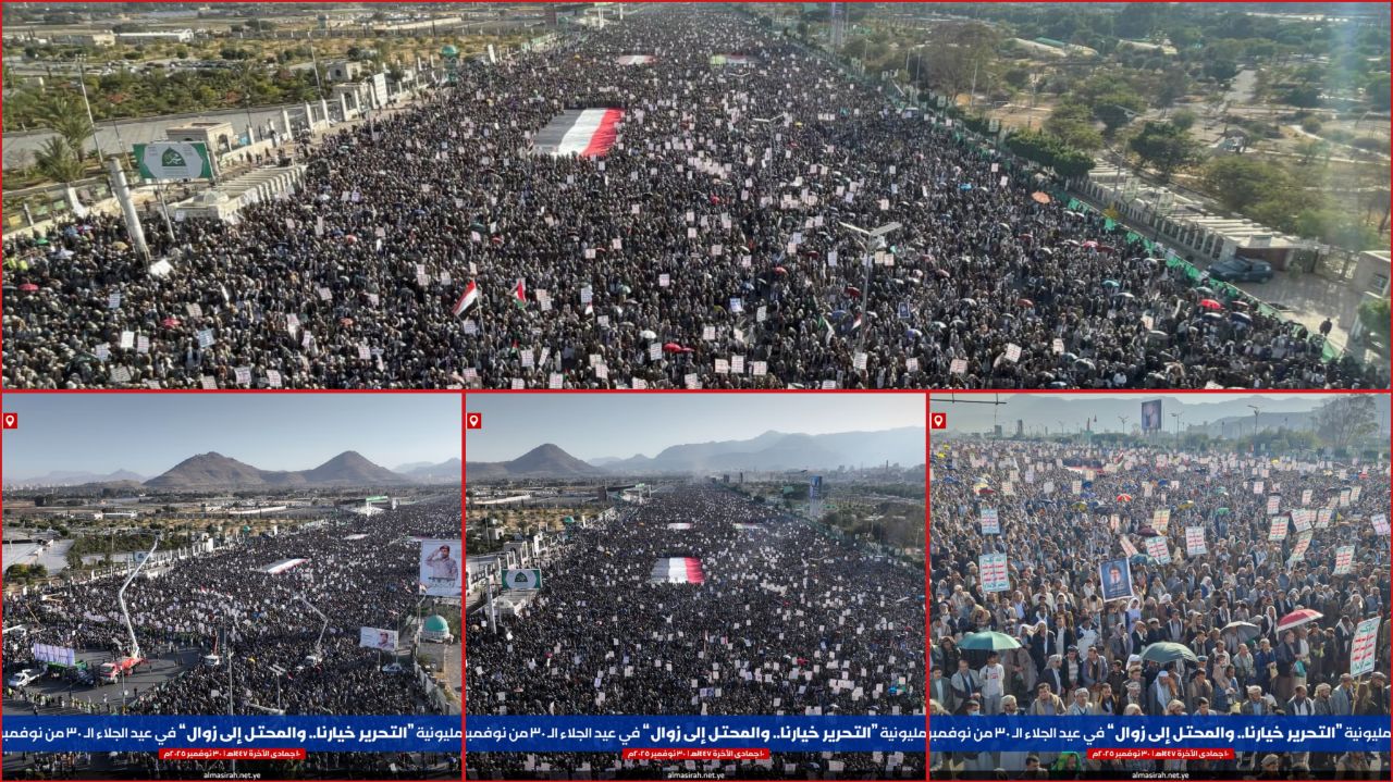 صنعاء تشهد حشداً مليونياً تاريخياً في عيد الجلاء والشعب يؤكد: سندحر المحتل الجديد ولن نترك فلسطين