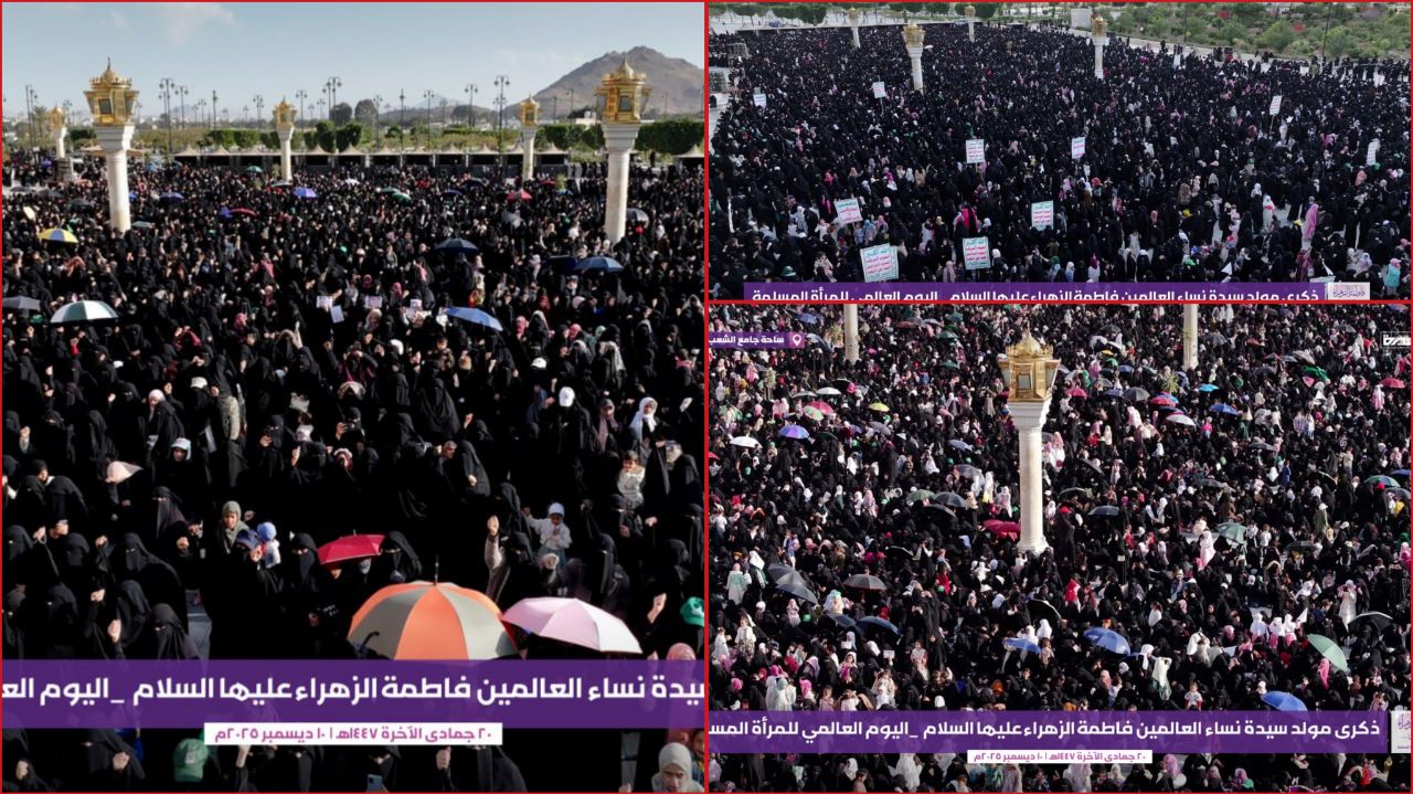 صنعاء | المسيرة نت: احتشدت حرائر اليمن في العاصمة صنعاء، عصر اليوم، احتفاءً بذكرى ميلاد سيدة نساء العالمين فاطمة الزهراء عليها السلام، تزامناً مع اليوم العالمي للمرأة المسلمة، في تأكيد على حضور المرأة اليمنية في كل المحطات الجامعة، كما هو حضور أحرار اليمن في كل الساحات والميادين.