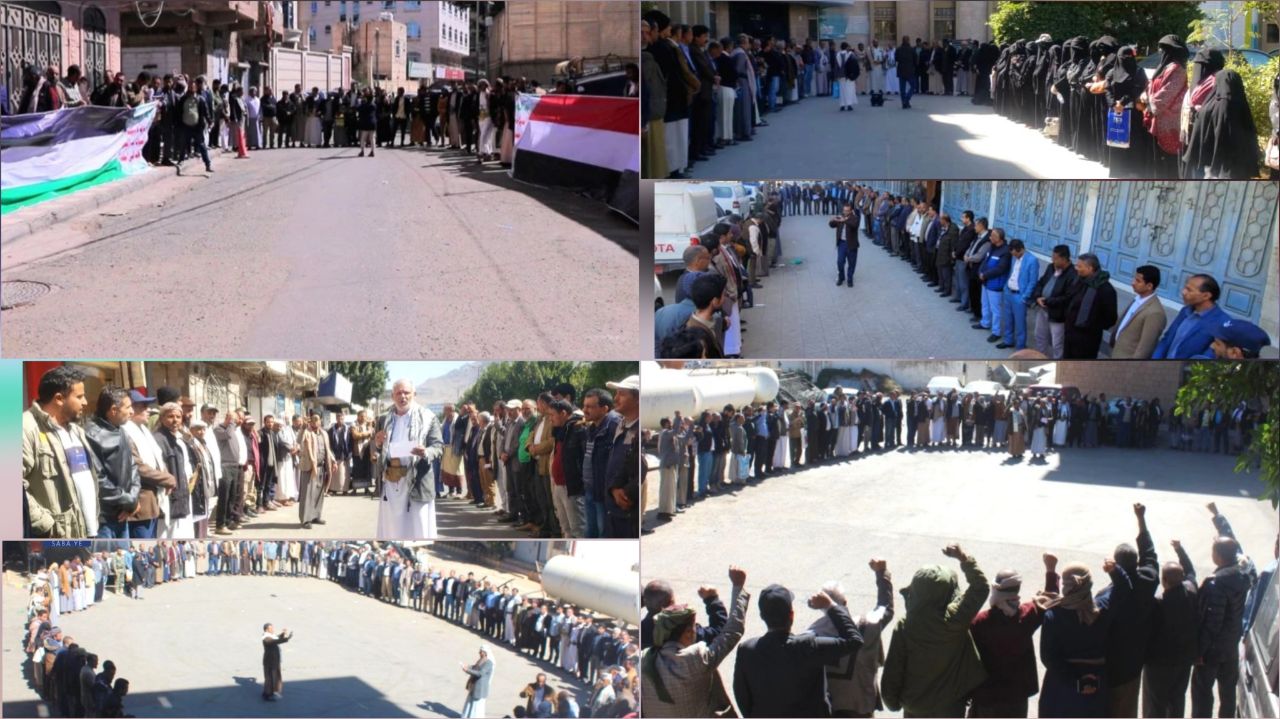 وقفات للمكاتب التنفيذية بصنعاء تؤكد ثبات الموقف اليمني رسميًا وشعبيًا ضد المؤامرات الصهيوأمريكية