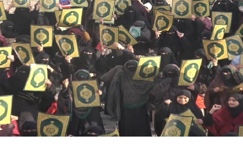فعاليات نسائية غاضبة بمديرية سنحان تنديدًا بالإساءة الأمريكية للقرآن الكريم