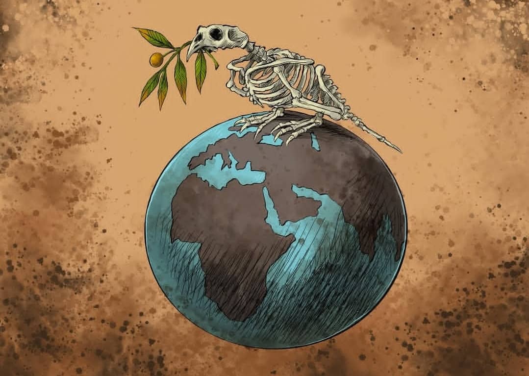 مسعود شجاعي طباطبائي طائر السلام وقد تحوّل إلى «ظلّ من عظام»، في استعارة بصرية