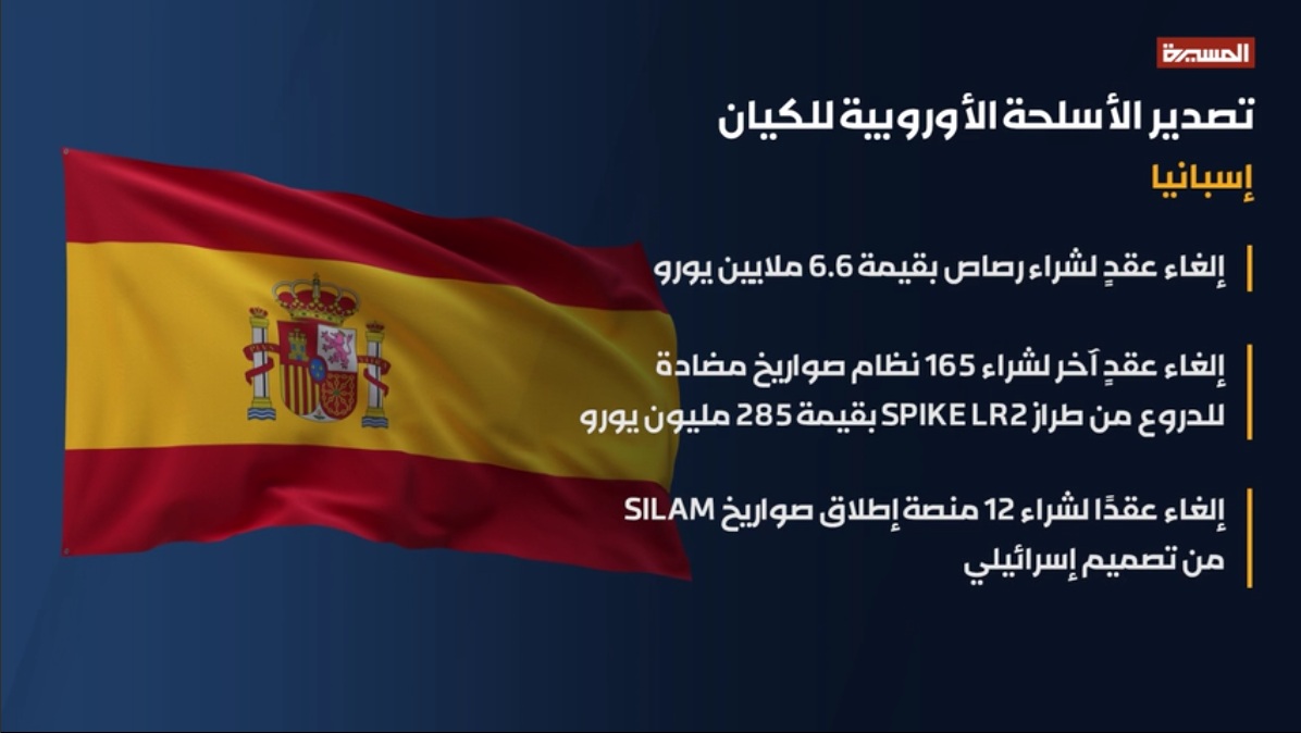 الحكومة الإسبانية منذ أكتوبر 2023 عن قيود مشددة على تصدير السلاح للكيان المجرم،