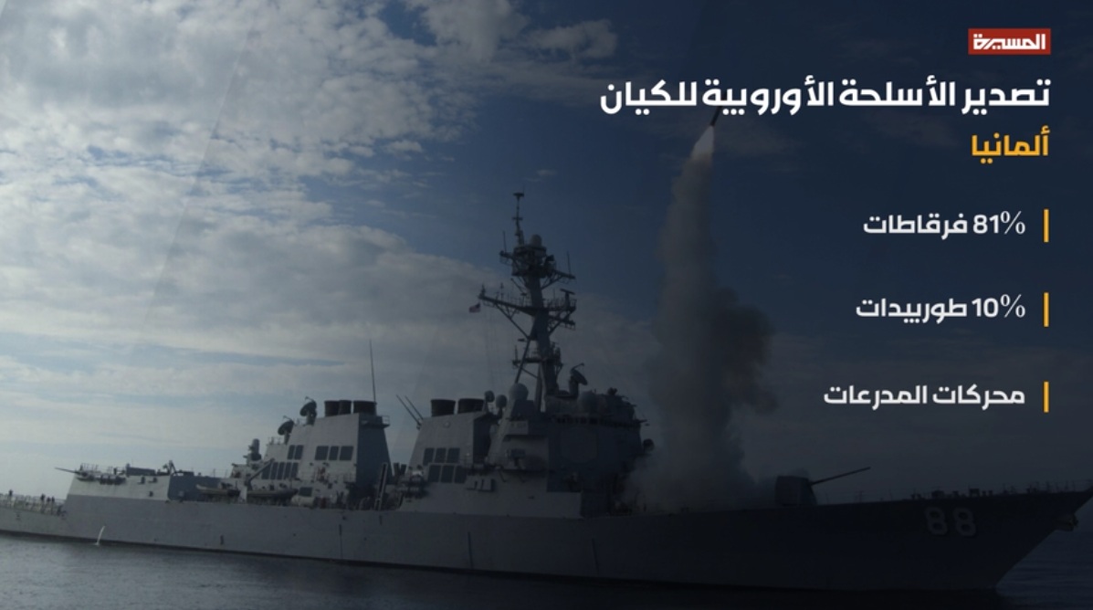 ووفقاً لتقرير متلفز بثته قناة المسيرة، مساء اليوم الأحد، للزميل نجيب الأشموري، فإن تقارير حديثة تشير إلى أن الدول الأوروبية تمثل ركنًا أساسيًا في تسليح كيان العدو بعد الولايات المتحدة الأمريكية، مع تفاوت السياسات والمواقف بين دولة وأخرى.