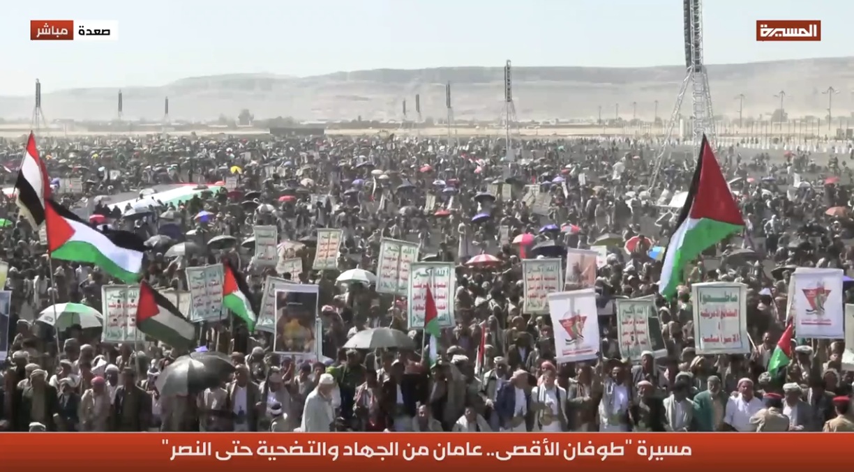 وأكد مراسل قناة المسيرة في صعدة، علي الشرقبي، أن هذا الحراك الجماهيري يعكس وعيًا دينيًا ووطنياً راسخًا، وأن الشعب اليمني يرى نفسه شريكًا أخلاقياً وقوميًا في معركة فلسطين، مع استمرار التضامن الشعبي على مدى عامين دون توقف، رغم الانقسامات والتخاذل العربي والدولي.