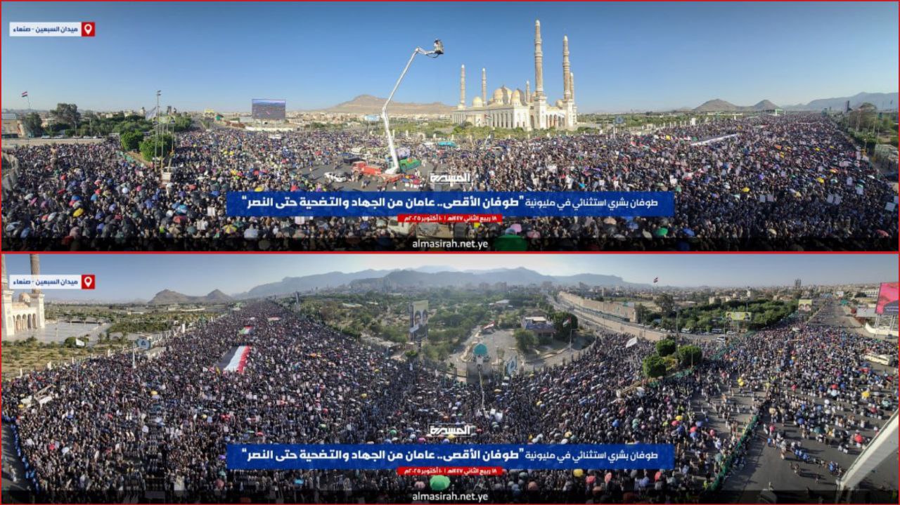 [🔵 بيان مليونية " طوفان الأقصى.. عامان من الجهاد والتضحية حتى النصر " بـ #ميدان_السبعين في العاصمة #صنعاء | 18-04-1447هـ 10-10-2025م#طوفان_الأحرار #غزة_تنتصر pic.twitter.com/734w1b2vzv— قناة المسيرة (@TvAlmasirah) October 10, 2025]