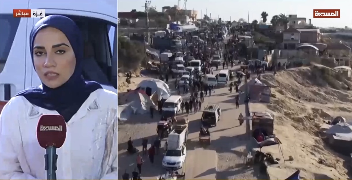 وقال مراسلة قناة المسيرة في غزة، دعاء روقة، التي اضطرت للنزوح من المدينة إلى وسط القطاع مع توسّع العمليات البرية الصهيونية: "كنت أتمنى عند بدء وقف العدوان أن أعود إلى مدينتي، إلى الشمال، لأعانق عائلتي التي رفضت النزوح، لكن عملي الميداني ألزمَني البقاء هنا لنقل الصورة، فواجبنا كإعلاميين أن نوثّق مشاهد الصمود، وأن نُبقي الحقيقة حيّة."