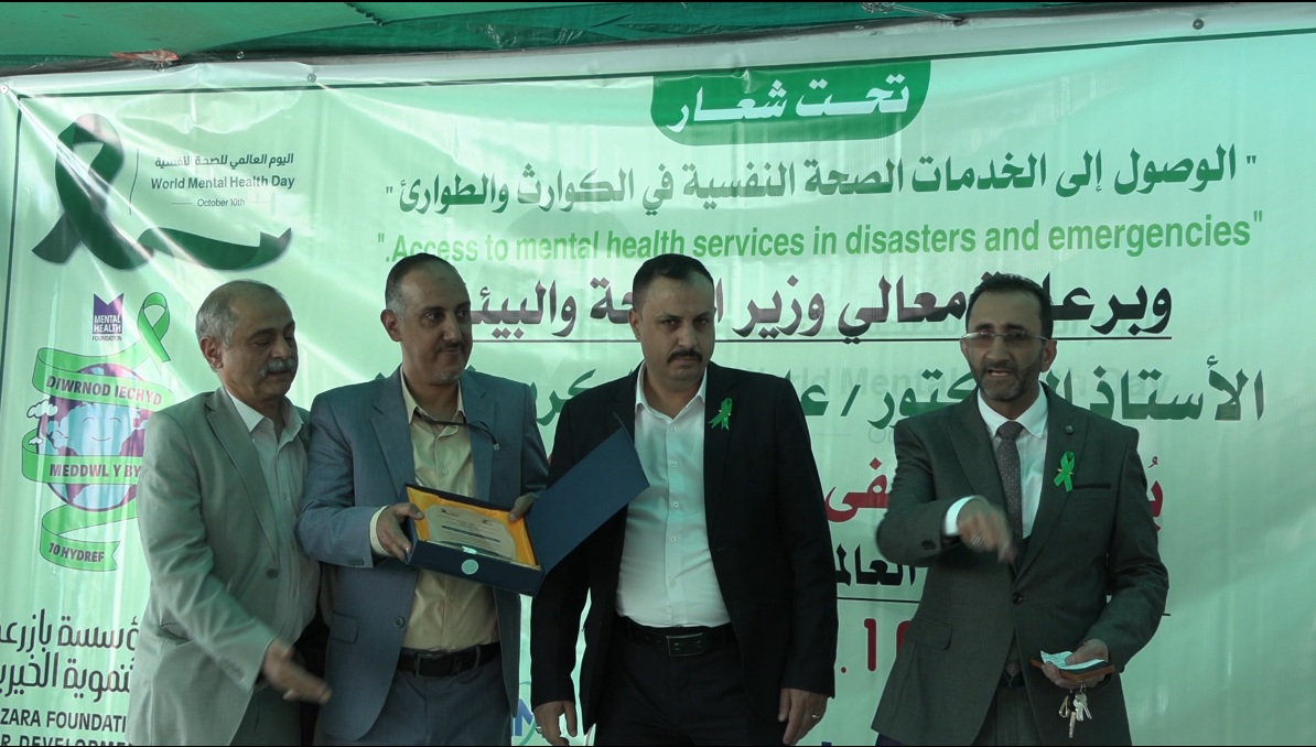 وفي الفعالية، أكّد وزير الصحة والبيئة، الدكتور علي عبد الكريم شيبان، في كلمته على أهمية الصحة النفسية باعتبارها جزءاً لا يتجزأ من الصحة العامة، مشيراً إلى أن هناك عدة مشاكل تواجه هذا القطاع، منها عزوف كثير من الناس عن طلب خدمات الصحة النفسية خوفاً من "وصمة العار" المرتبطة بوصفهم "مجانين أو مصابين بالاكتئاب".