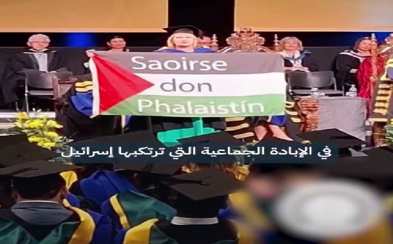 خريجة أيرلندية ترفع علم فلسطين في حفل تخرجها وتدعو جامعتها لقطع العلاقات مع الكيان