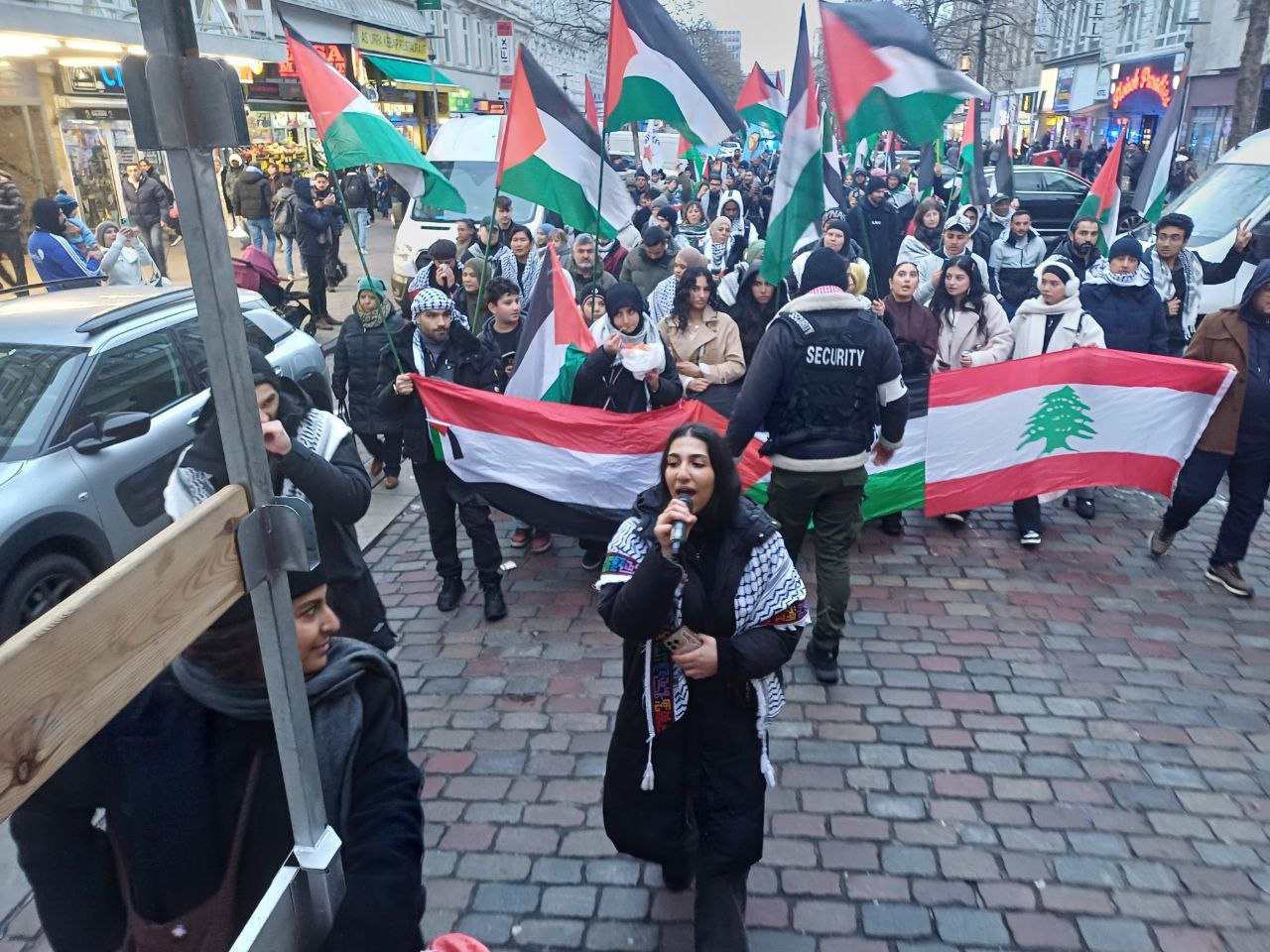 المسيرة نت | خاص: شهدت مدينة هامبورغ الألمانية مطلع هذا الأسبوع مظاهرة حاشدة شارك فيها ابناء الجاليتين اليمنية والفلسطينية في المانيا، وذلك دعماً للمقاومة الفلسطينية واحتجاجاً على استمرار انتهاكات العدو الإسرائيلي لاتفاق وقف إطلاق النار.