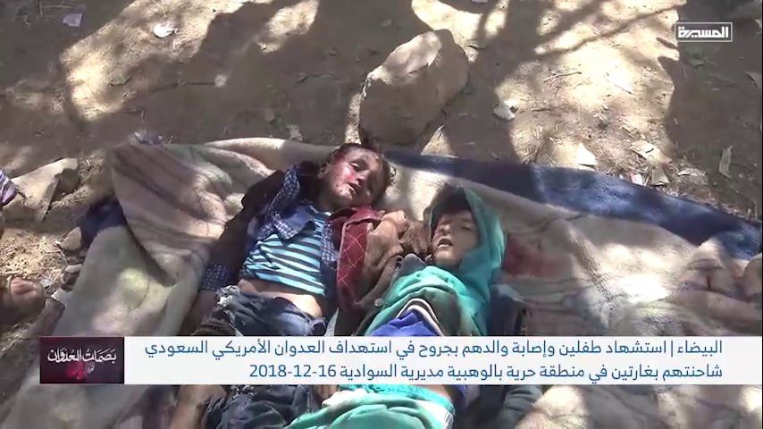 ديسمبر عام 2018، استشهد طفلان وأصيب والدهما جراء غارتين شنهما طيران العدوان على