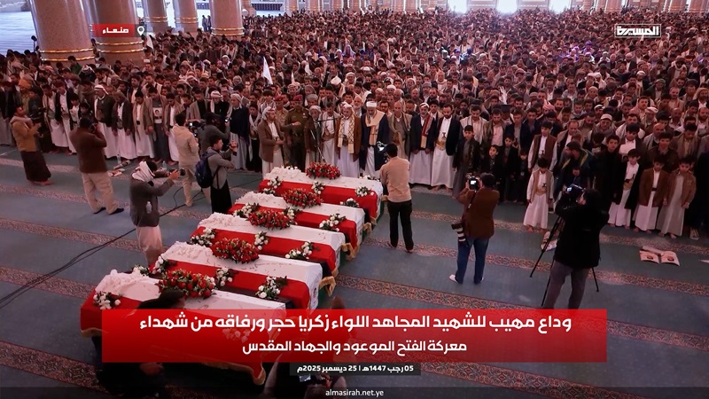 صنعاء| المسيرة نت: في يومٍ مشهود، ودّعت العاصمة صنعاء كوكبةً من الشهداء العظام الذين ارتقوا في الصفوف المتقدمة خلال معركة الفتح الموعود والجهاد المقدس، في موكب تشييع مهيب عكس عظمة التضحيات وصدق الانتماء.