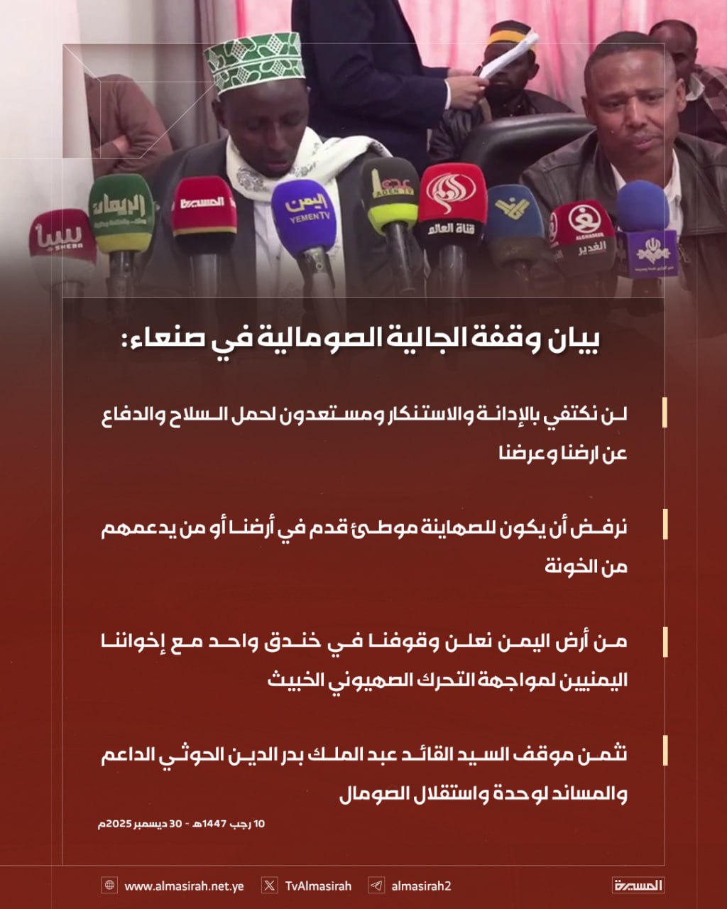 الجالية الصومالية: مؤامرة تمزيق الصومال صهيونية المنشأ واليمن سندنا في معركة الوجود