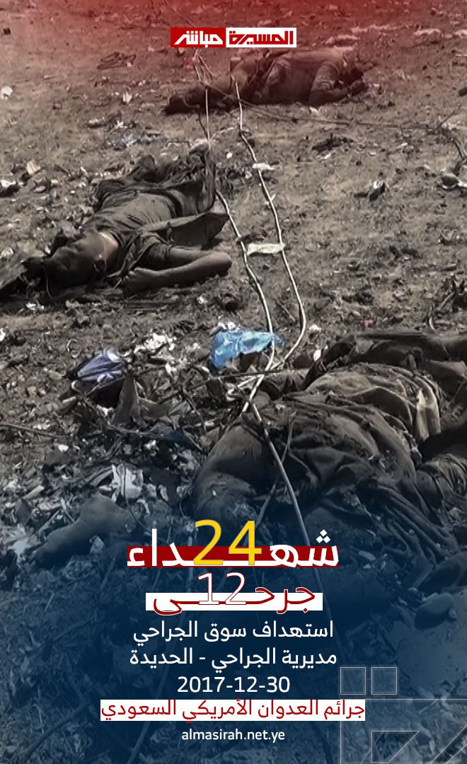الوحشية على سوق الجراحي بذات المديرية، محافظة الحديدة، أسفرت عن استشهاد 24 مدنياً