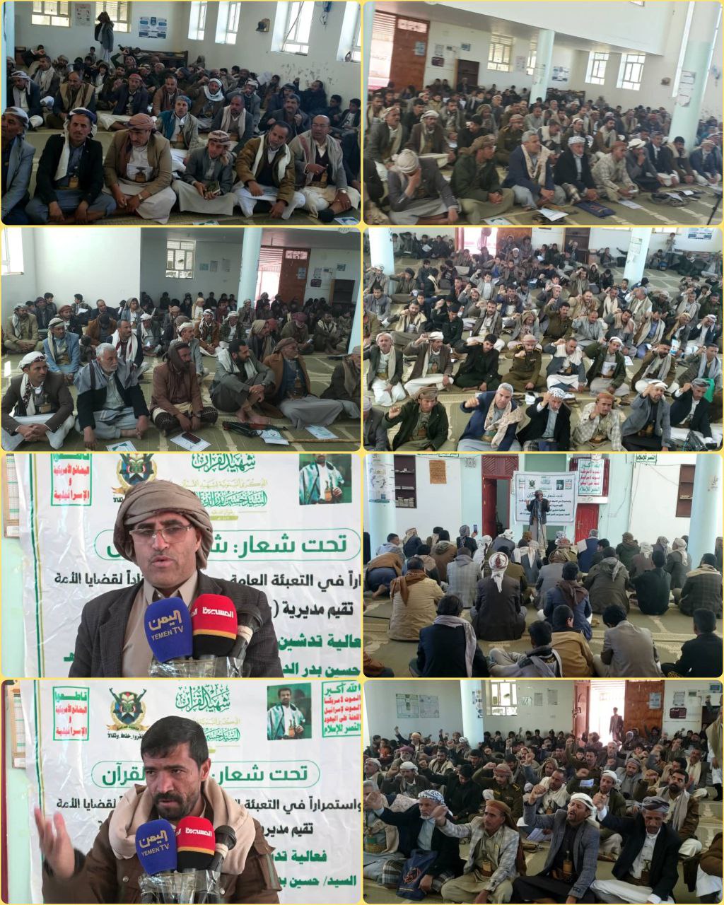 وعلى صعيد متصل، نظمت السلطة المحلية والتعبئة العامة بمربعي البيضاء والأوسط فعالية خطابية وثقافية تدشينًا لأنشطة وفعاليات الذكرى السنوية للشهيد القائد، كما أُقيمت وقفة قبلية مسلحة بمديرية الرياشية عزلة الوادي تحت شعار "بهويتنا الإيمانية سنواجه مشاريع الصهيونية"، إعلانًا للنفير العام وتأكيدًا على الجهوزية والاستعداد لمواجهة جولة التصعيد القادمة مع الأعداء.