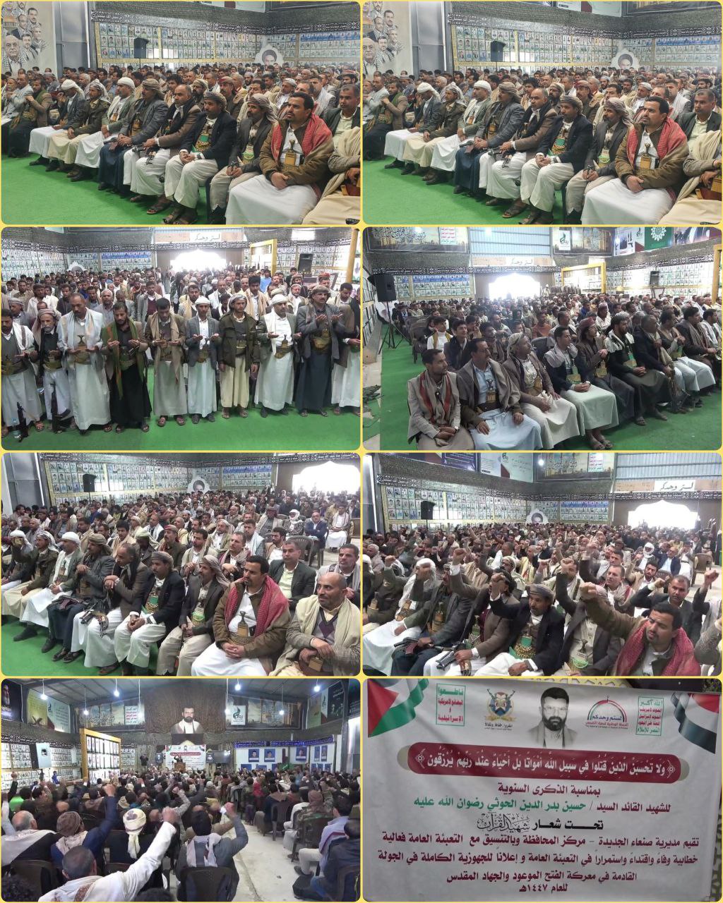 المسيرة نت| خاص: أحيت مديرية صنعاء الجديدة بمحافظة صنعاء، اليوم، الذكرى السنوية لشهيد القرآن السيد حسين بدر الدين الحوثي "رضوان الله عليه" بفعالية مركزية حاشدة.