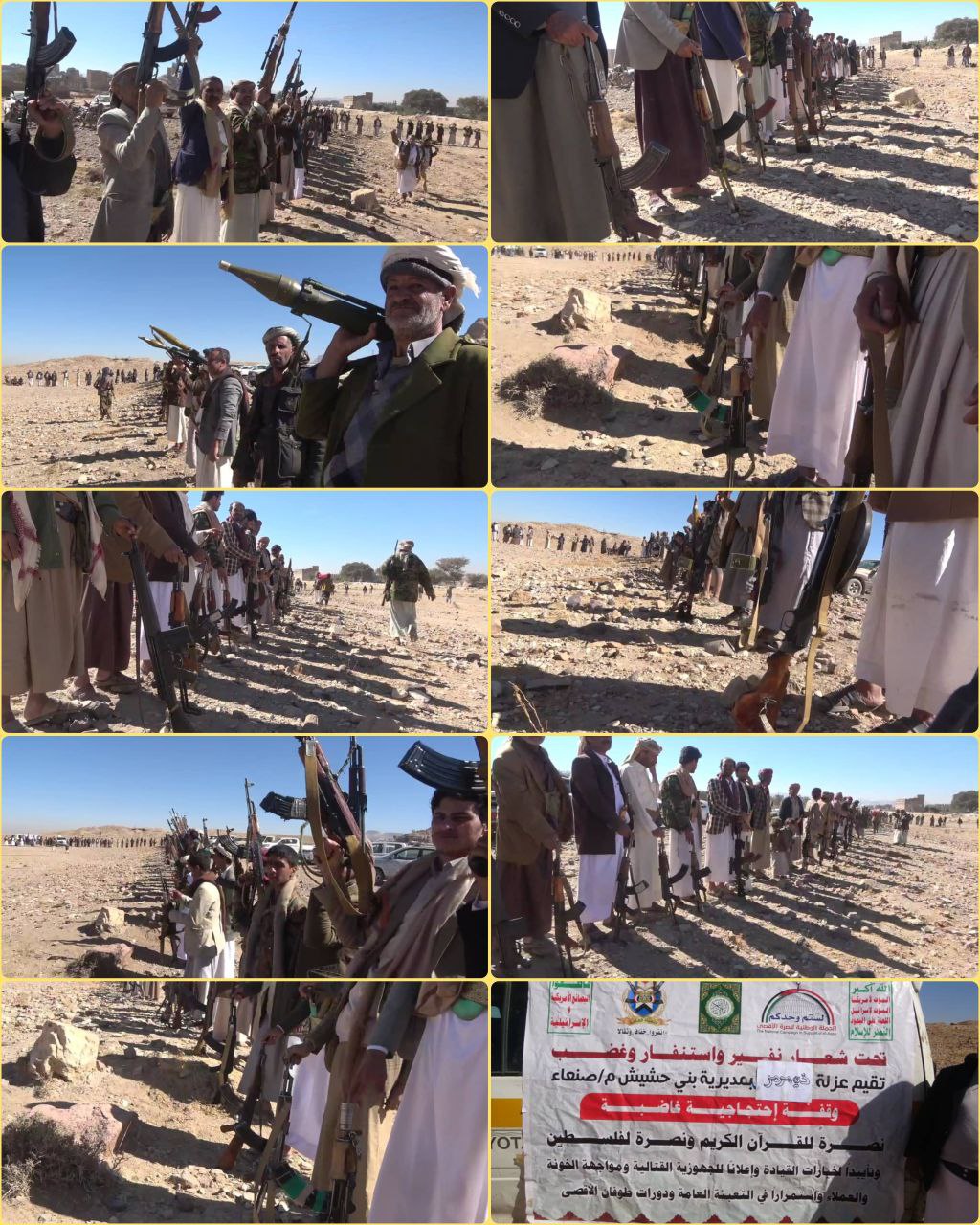 كما شهدت عزلة ذي مرمر بمديرية بني حشيش اليوم وقفة قبلية مسلحة نظمتها التعبئة العامة، جدد خلالها المشاركون التأكيد على الجهوزية العالية لمواجهة مخططات الأعداء وكل أشكال التحديات التي تستهدف الوطن وثوابته، معبرين عن إدانتهم لجريمة الإساءة للقرآن الكريم.