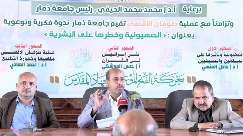 ندوة فكرية في ذمار تسلط الضوء على خطر الصهيونية وتؤكد الموقف اليمني المساند لفلسطين