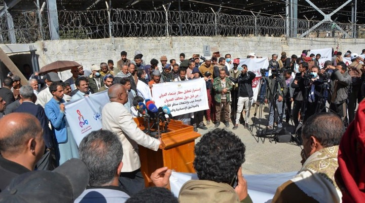 وقفةٌ احتجاجية تطالب بفتح مطار صنعاء الدولي لإنقاذ حياة المرضى